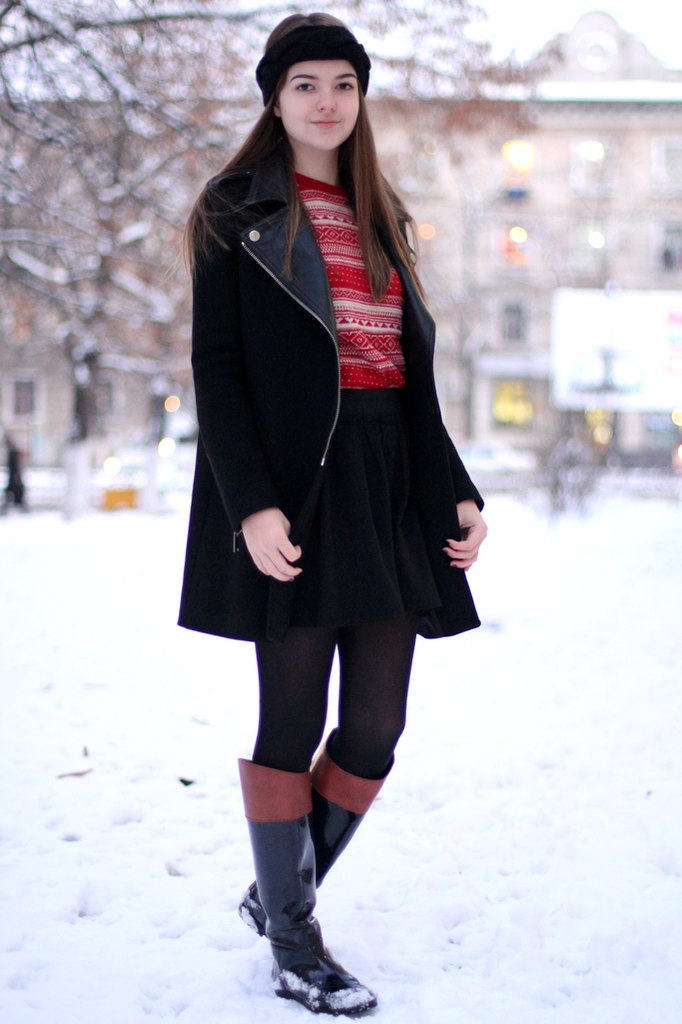 It's Christmas time! I really like this theme in dress. Especially this sweater that I bought two years ago, but I wear it in the first time. You can feel the holiday. Outside, is snow, very beautiful!